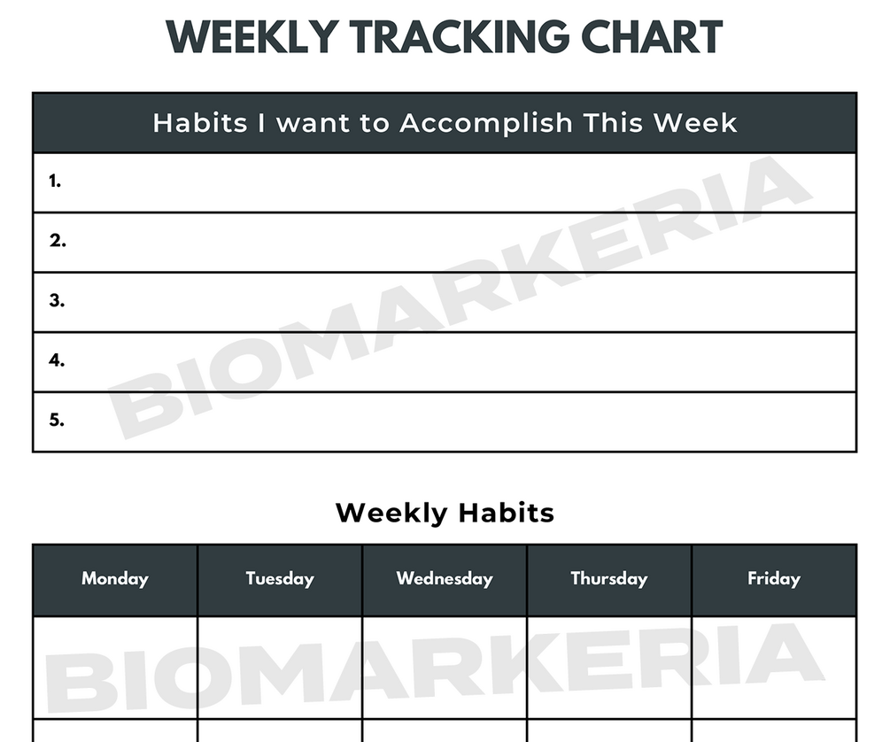 Weekly Habit-Tracking Table: The weekly table is designed to help you track up to five habits from Monday to Friday, leaving the weekend open for flexibility and rest. This format is perfect for weekday routines and is especially useful for habits that require a focused, consistent effort during the workweek. By tracking only Monday through Friday, you can balance productivity with flexibility, preventing burnout while still working toward your goals.